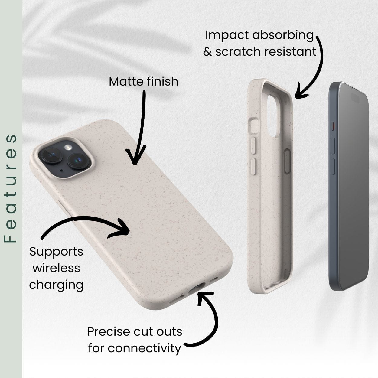 Our cases don’t just look good, they work hard too. Shock-absorbent, scratch-resistant, and with precision cut-outs for all your buttons and ports. Plus, they're wireless-charging compatible because sustainability shouldn’t slow you down.
