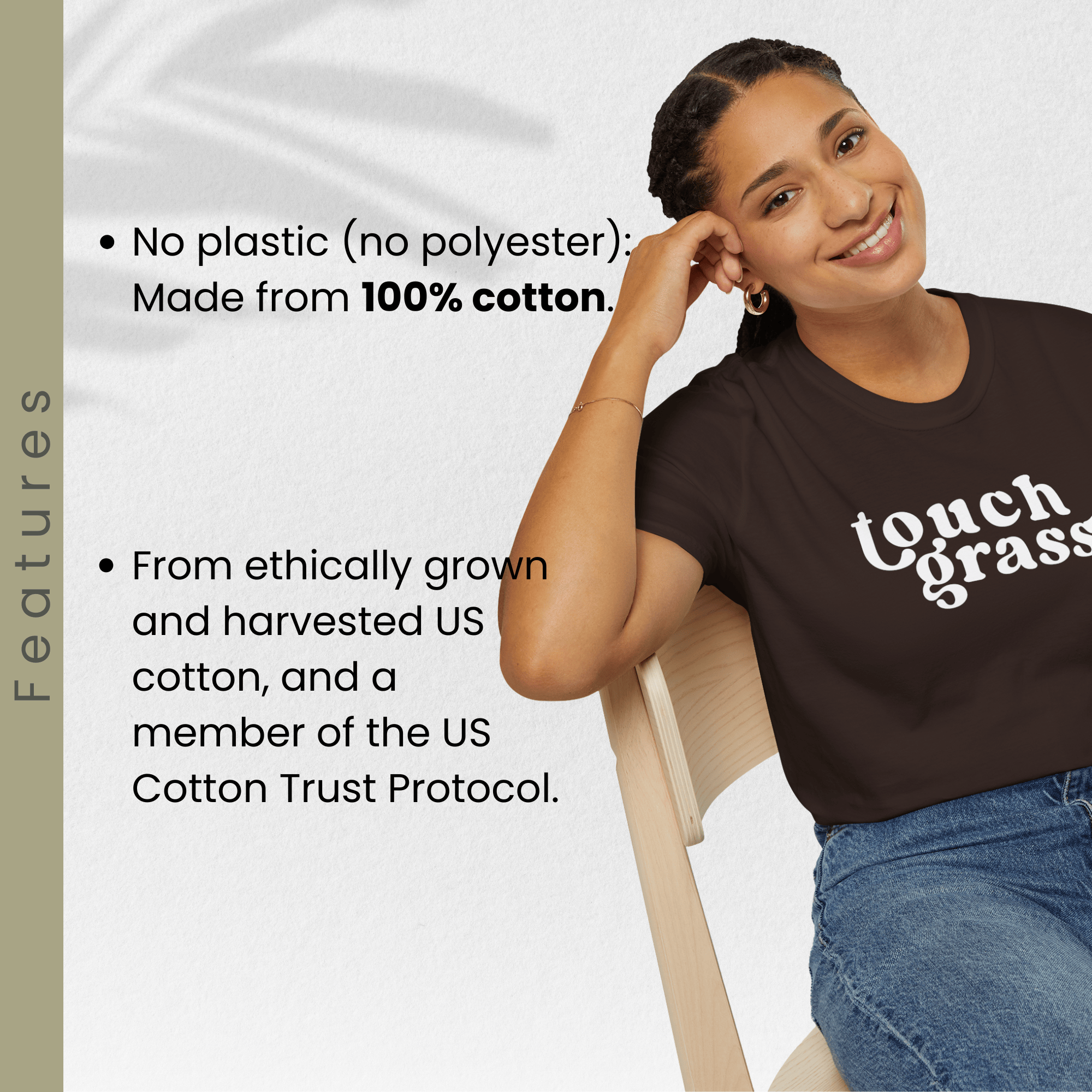 100% ring-spun cotton. Soft, breathable, and no synthetic stuff touching your skin. Made from ethically grown US cotton with all the certifications that matter (US Cotton Trust Protocol, Oeko-Tex).